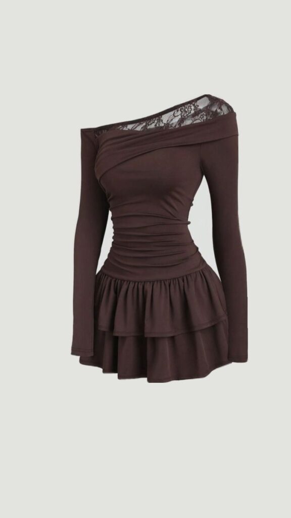 BROWN ONE SIDE OFF SHOULDER DRESS